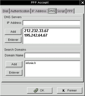 Puis les onglets concernant l'IP (qui est dynamique) et le DNS, |