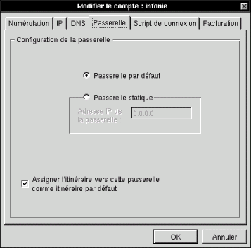 Configurer DNS et Passerelle en cliquant sur les onglets correspondants : | |||