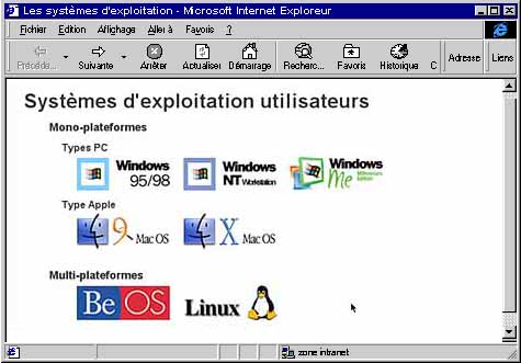 En cochant ou décochant les options du menu "Affichage", il est possible d'adapter la fenêtre à ses propres besoins (ici la barre des liens et la ligne d'adresse). Il est également possible d'ouvrir un menu contextuel (bouton droit de la souris) en cliquant sur les différents éléments de la fenêtre. | |